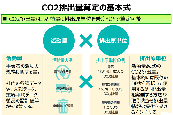 Scope3を算定する上で、押さえておきたいのが、CO2排出量算定の基本式です。