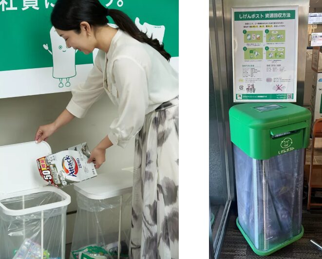 ▼花王の茅場町事業場に設置している回収ボックス(左)
