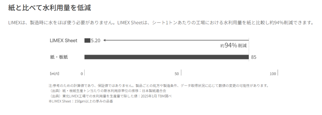 出典:TBM「紙と比較したLIMEXの水削減効果」