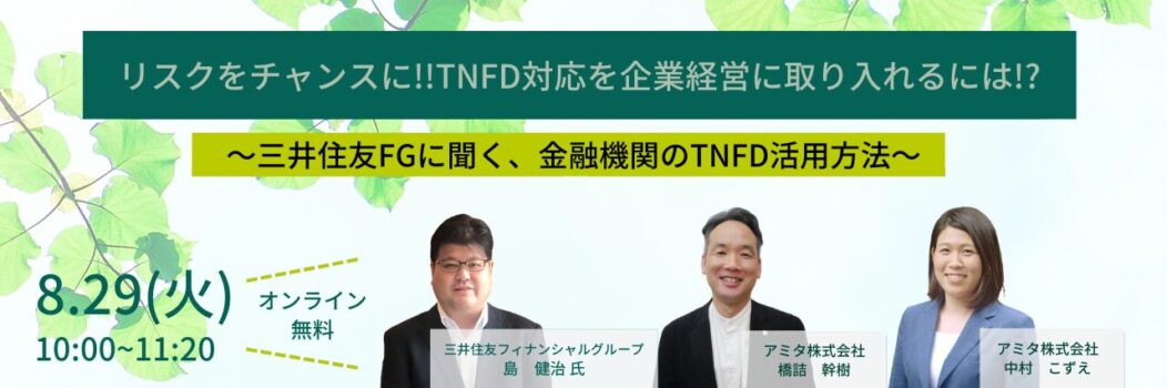 【動画・資料公開中】リスクをチャンスに!!TNFD対応を企業経営に取り入れるには!?~三井住友FGに聞く、金融機関のTNFD活用方法~