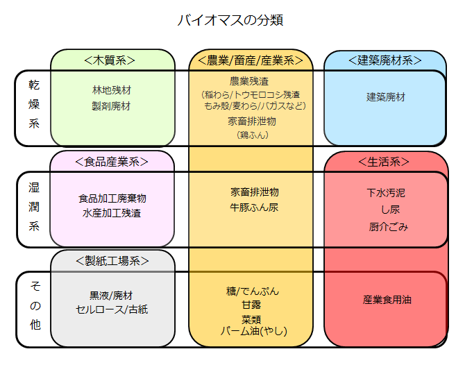 出典:資源エネルギー庁ウェブサイト「なっとく再生エネルギー」バイオマスの分類の図をもとに、 (株)オオスミが作成。