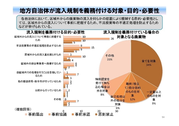 - 域外産廃搬入: 70自治体が域外排出事業者に義務付け