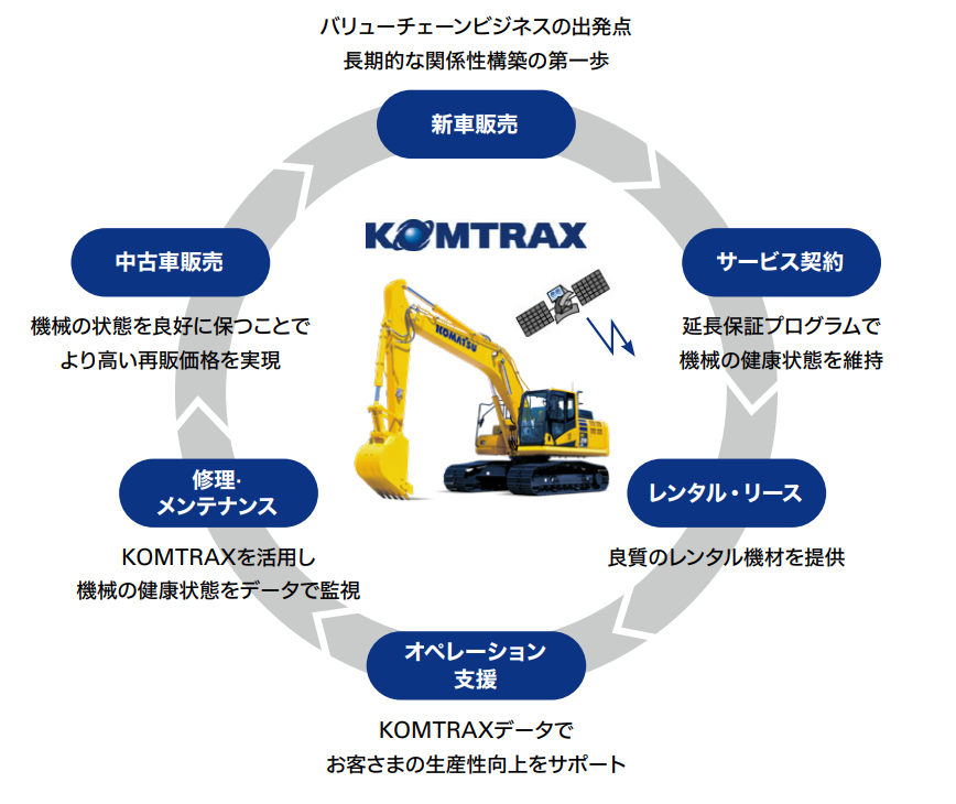 ▼顧客との関係強化を重視したコマツのビジネスモデル