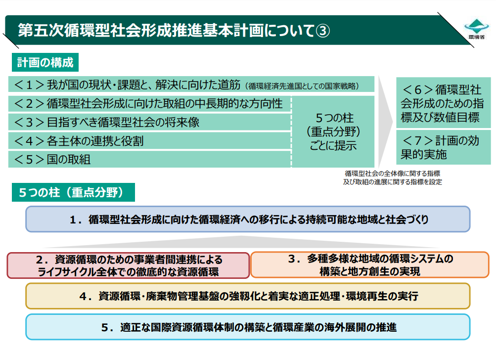 2024年8月、循環基本法の五回目の改訂「第五次循環型社会形成推進基本計画(以下、第五次循環基本計画)」が閣議決定されました。