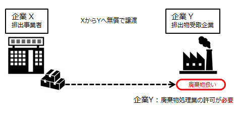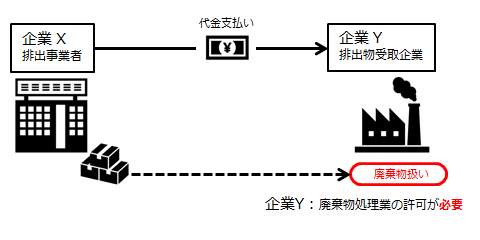 ⇒Yが廃棄物処理業の許可を持っていない場合、廃棄物処理法違反に該当