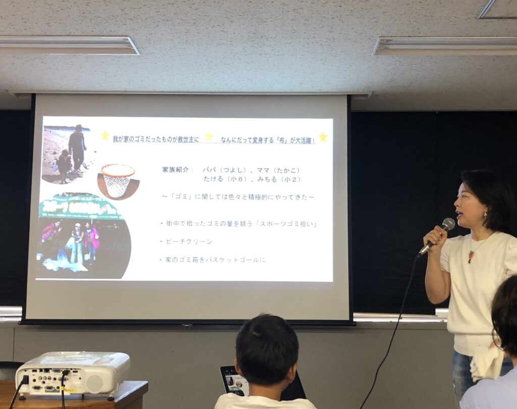 コンポストの湿度や温度管理をする小型装置、海ごみを使用したガラスカップ、コーヒーかすを活用したお菓子など多様なアイデアが出ましたが、市民の部で金賞を受賞したのは、家庭ごみの状況を家族全員で調査し、その結果からティッシュを布に置き換えるというアクションでした。家族だけでなく身近な人たちと協力し、できるところから楽しみながらはじめるという、生活や日常に基づいたアイデアが評価されました。まさに、小さくてもいい、できるところからでいい、自分や家族の暮らしに向き合って、それぞれのやり方で「循環者」になろうとする一人一人を讃えたい、というアワード関係者の眼差しが感じられた受賞でした。