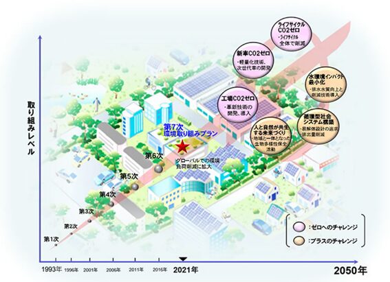 長期ビジョンについては「ゼロへのチャレンジ」と「プラスへのチャレンジ」で構成されるトヨタグループの環境ビジョンに準じて取り組みを進めています。また、そのうちの1つに「循環型社会・システムの構築」を掲げており、TABWDはこの取り組みの1つとして、石油由来プラスチックの削減を目標に日々研究開発を行っています。