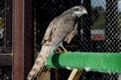 オオタカとほぼ同じ体格ですが、ずんぐりとした体つきでオオタカほどの敏捷性はありません。このノスリは、野ネズミやモグラといった小型哺乳類を主な餌としているので、鳥にとってはそれほど怖い存在ではありません。餌の少ない冬には小鳥を襲うこともありますが、夏鳥のサシバやミゾゴイにとってはあまり脅威ではないのです。それどころか、ノスリの巣の近くにサシバが巣を設けていることもあります。なぜなのでしょうか。(写真はノスリです。)