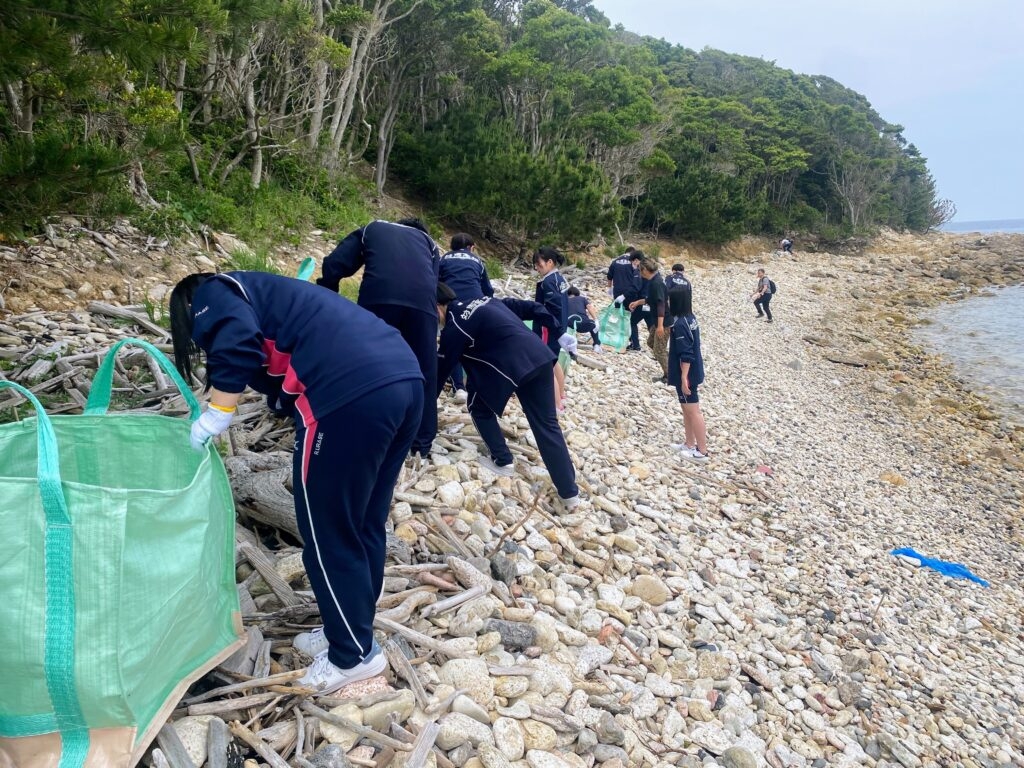 ▼対馬高校生徒による海洋ごみ拾いの様子