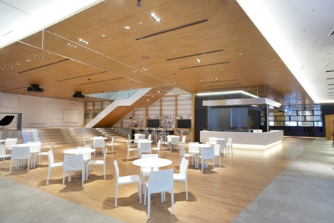 SYNQA(シンカ)は2012年に完成した施設で、お客様とオープンイノベーションを実践していくために作りました。構造としては、カジュアルな空間になっている1階で広く外部にある知識・知見を取り入れ、そこで出合った様々な化学変化をフォーマルな空間に仕上げた2階でプロジェクトとして醸成し、発想と機能のバランスを重視した3階でマーケットに出すための内部的なコミュニケーションを図る、というスパイラルアップの構造になっています。 そして、すべての階で、イトーキの企業コンセプトである新Ud&Eco style(ユーデコスタイル)というUd(ユニバーサルデザイン)とEco(エコデザイン)を融合した仕掛けがちりばめられています。