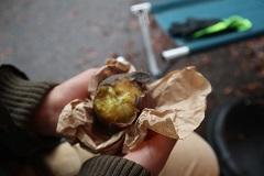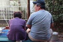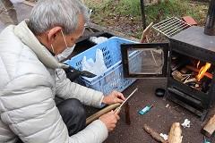 右の写真に写っている方も防犯パトロールがきっかけで、日常的にごみ出しに参加してくださった一人です。火起こしが上手で、帰りがけにはいつも薪ストーブの火の様子を見ては、薪を割り、火をくべていってくれました。時には焼き芋を持ってこられて、ふるまってくださいました。ご自身で食べるためというよりも、皆で一緒に食べることや、あるいは食べてもらうことを楽しんでいらっしゃったように感じます。
