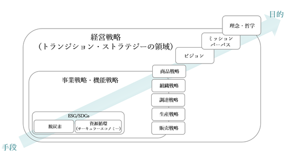 企業の本来の目的は、事業を通じてミッション、パーパス、ビジョンといったもので表現される「企業理念」を実現することであり、CO2や廃棄物の排出をゼロにすることだけが重要ではありません。しかし、脱炭素やサーキュラーエコノミーに取り組むということは、気を付けなければそれがゴールとなってしまい、手段が目的化するという落とし穴に陥ってしまいます。