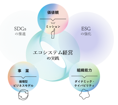 「エコシステム経営」とは、循環型のビジネスモデルを有することに加え、以下の2つの要素を持ち合わせた経営のことです。
