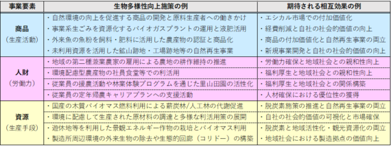 ▼【図-3】各事業要素における生物多様性向上施策と期待される相互効果の例