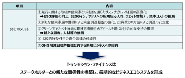 <グリーンボンド(トランジション・ファイナンス)のメリット>