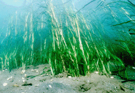 藻場とは、海藻がつくる茂みのことです。藻場は波や潮流による水の流動を和らげるとともに、幼稚魚に外敵から身を守る隠れ場を与えます。微少な藻類やプランクトンなどを付着させこれを餌とする小型の甲殻類であるワレカラ類、ヨコエビ類といった生き物を葉上に集めます。さらにこれらの葉上生物は魚類の餌になり、数珠つなぎの多様な生物層を形成していきます。また最近は、二酸化炭素を吸収し、大気中への拡散を防ぐブルーカーボンとしての機能も知られるようになりました。