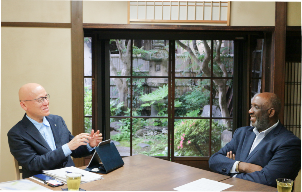 関西弁を操り、軽快なトークを繰り広げるマリ共和国出身の空間人類学者、ウスビ・サコ氏。空間とコミュニティの関係性について研究するサコ氏と、当社代表取締役会長の熊野英介が、マリの文化を参照しながら次世代のアソシエーションのあり方について議論を交わしました。