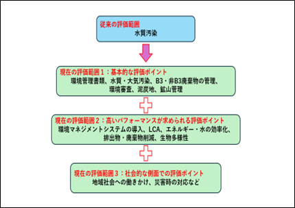 | 環境管理書類、水質・大気汚染管理、B3および非B3廃棄物の管理、環境監査、泥炭地および鉱山管理等 | 環境マネジメントシステムの導入、LCA、エネルギー・水の効率化、排出物・廃棄物削減、生物多様性保全等 |