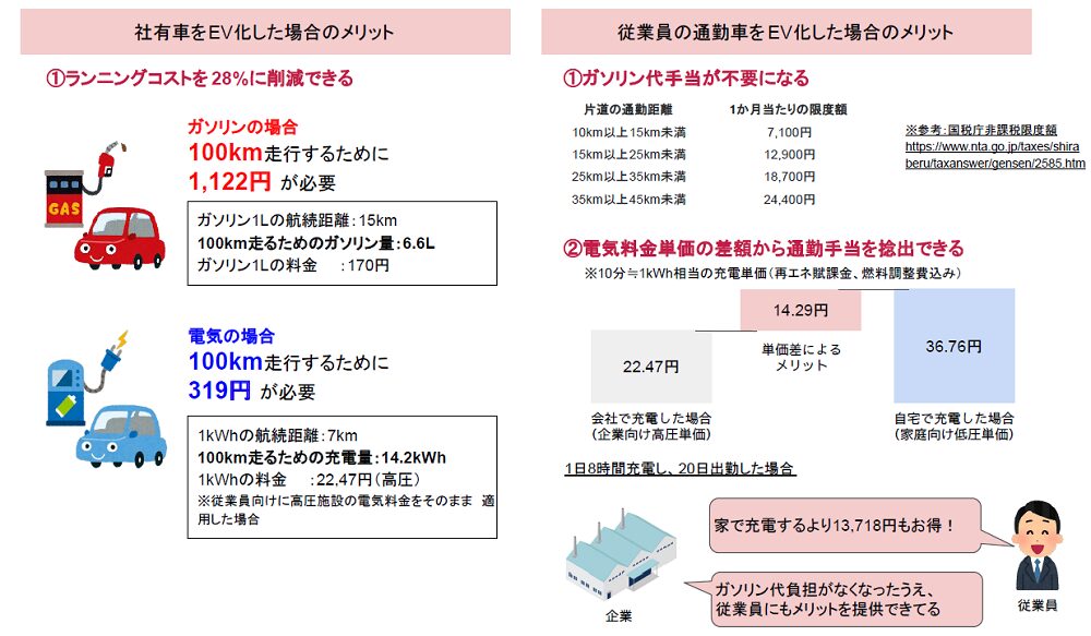 - 従業員の自家用車に対し、家庭での充電より安い充電機会を提供できる。