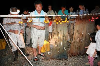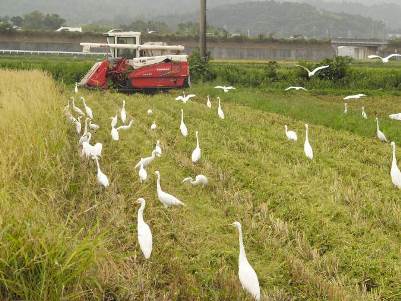目当てに群がる渡り鳥のチュウサギ(滋賀県高島市)