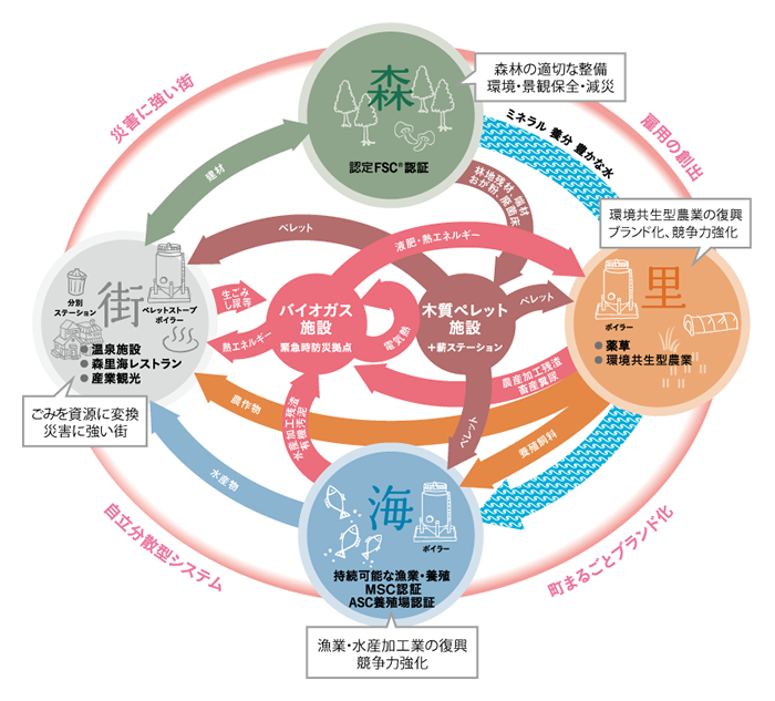 私は、そうしたビジネスモデルを現代に生み出せないかと考えています。共に人口が低迷した江戸時代と現代日本を融合させたビジネスモデルですね。実は、弊社が南三陸町で挑戦している循環型社会の構築、つまり食料とエネルギー、資源が人間関係性の中で循環していく中でのビジネスモデルも、これを目指しているんです。