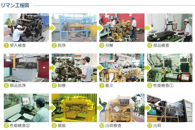 日本国内でも取り組みが進んでおり、国内でキャタピラー社製の建設機械・ディーゼルエンジン等の販売・サービスを手掛ける日本キャタピラーでは、リマン部品に対し新品部品と同様に部品保証を付け、顧客の車両を修理する際に使用する取り組みが行われています。
