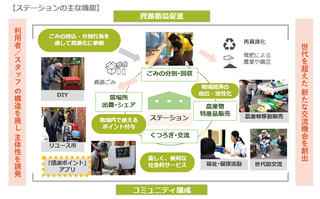 ※当社ではICTを活用したポイント交換や地域内の関係性を創出する各種機能を併設した資源循環の拠点を「MEGURU STATION®」と名付けています。
