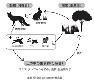 デイリーの3原則の意味を一言でいえば「生産・消費・排出のバランスをとること」です。しかし、このような原則を当然のこととして実践している持続可能な社会モデルがあります。それが「生態系」です。