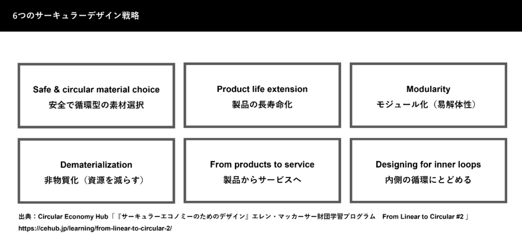 サーキュラーデザインと聞くと、素材や製品といった目に見える対象の範囲にとどまった設計を想像しがちですが、ビジネスモデルや購入後の利用、製品の手放し方も含めて、システム全体を俯瞰する視点も持ちあわせていないと、部分最適になってしまいます。