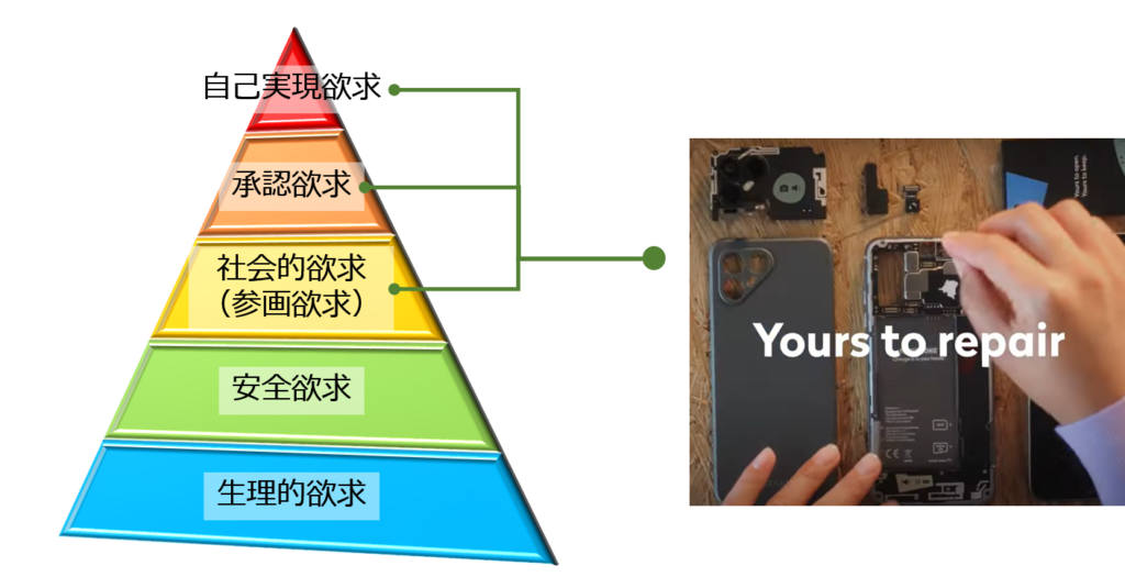 「未完」×「共創」のデザインがユーザーにもたらすのは、同じ考え方を持つメーカーや仲間たちと共に、商品やサービスに落とし込まれた「ストーリー」の一端を自分も担ったという経験価値であり、社会的欲求(参画欲求)や承認欲求、自己実現欲求などが満たされることによる、深い満足感です。そしてそれは、商品やそれにまつわる価値を提供する側・される側、ストーリーやコンセプトに対して共感する側・される側という彼我の関係性の消失でもあるのです。